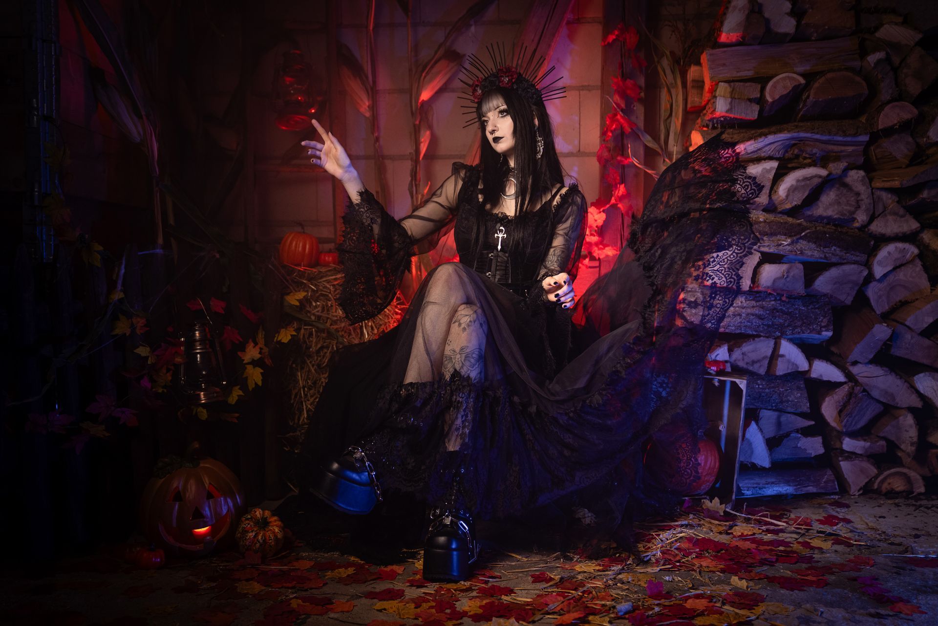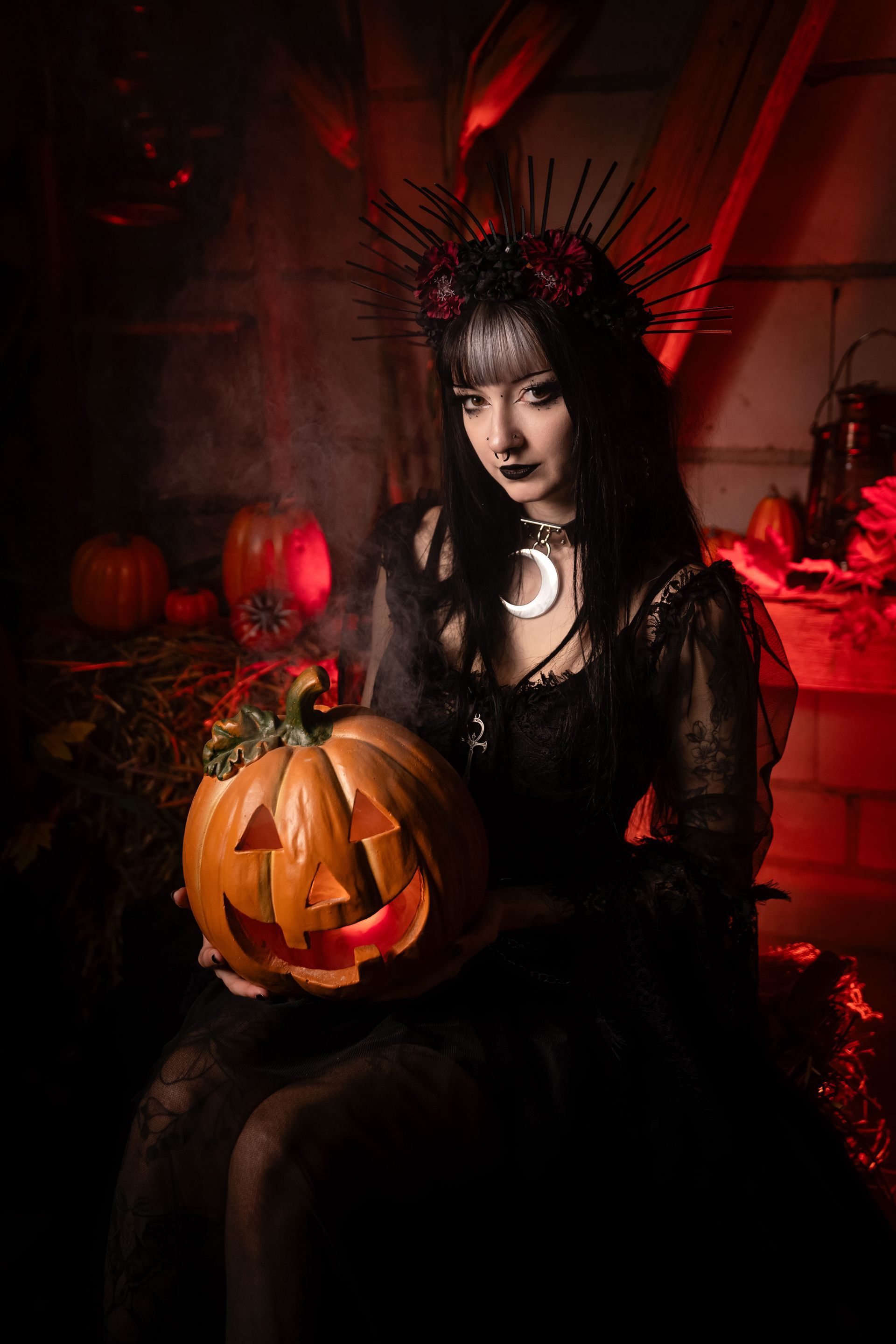 Jetzt wird’s spannend! Ihr habt 30 oder 60 Minuten Zeit, um euch in unseren herbstlich und gruselig dekorierten Sets fotografieren zu lassen. So viele Sets wie möglich – je nachdem, was wir in der Zeit schaffen!